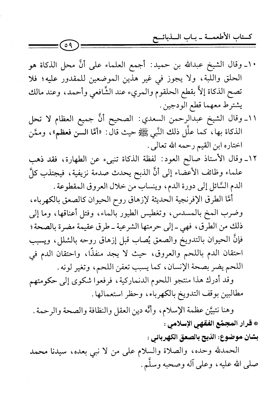* قرار المجمع الفقهي الإِسلامي: بشأن موضوع: الذبح بالصعق الكهربائي:
