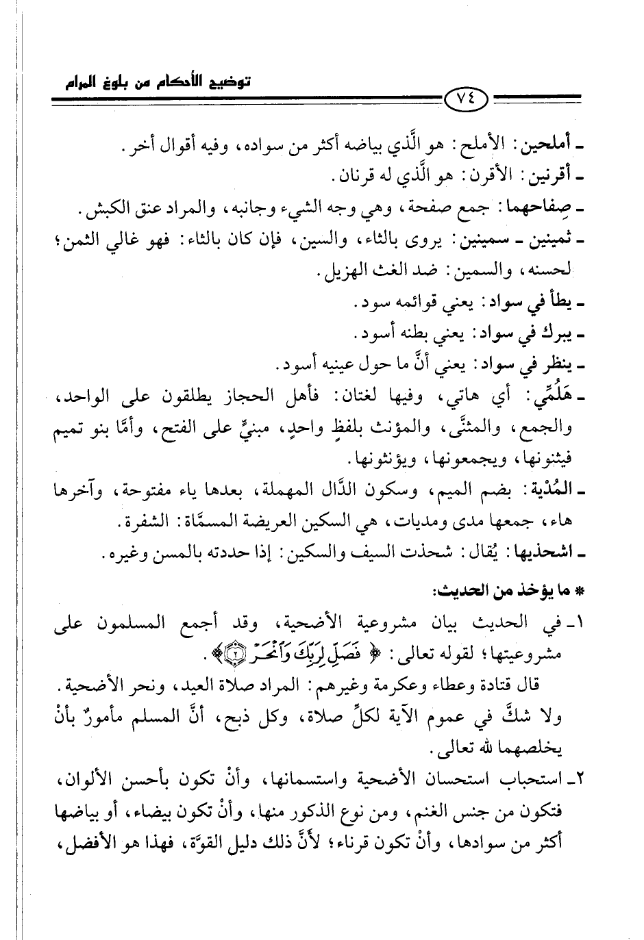 - أملحين: الأملح: هو الَّذي بياضه أكثر من سواده، وفيه أقوال أخر.