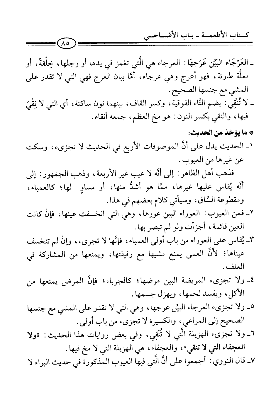 7 - قال النووي: أجمعوا على أنَّ الَّتي فيها العيوب المذكورة في حديث البراء لا