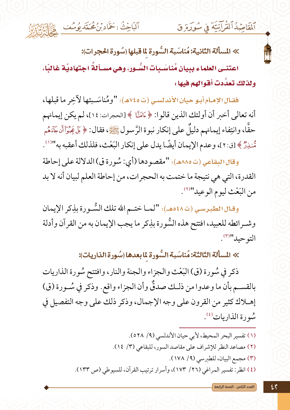 (¬٤). انظر: تفسير المراغي (٢٦/ ١٧٣)، وأسرار ترتيب القرآن، للسيوطي (ص ١٣٣).