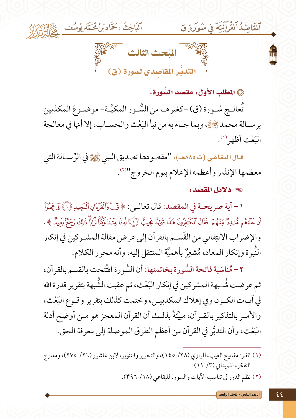 المَبْحث الثالث: التدبُّر المَقاصِدي لسورة (ق)