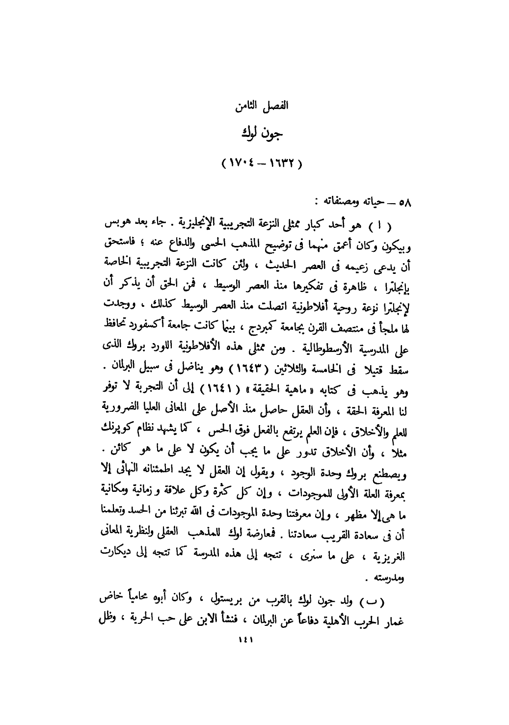 الفصل الثامن: جون لوك " 1632 - 1704 "