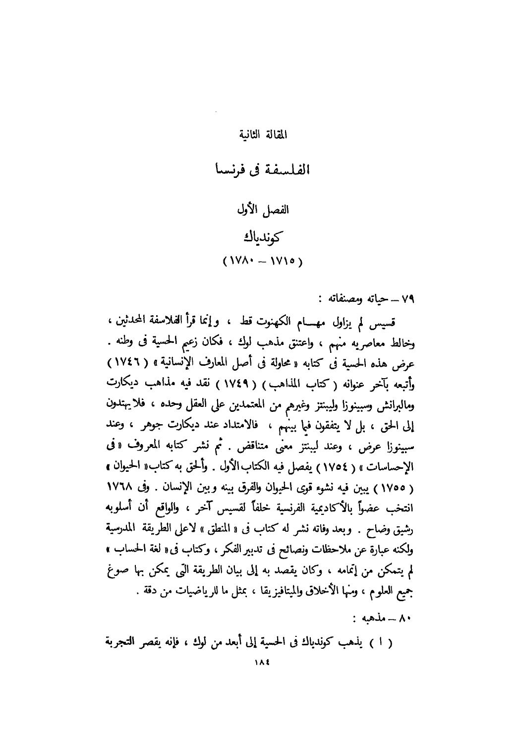 الفصل الأول: كوندياك " 1715 - 1780 "