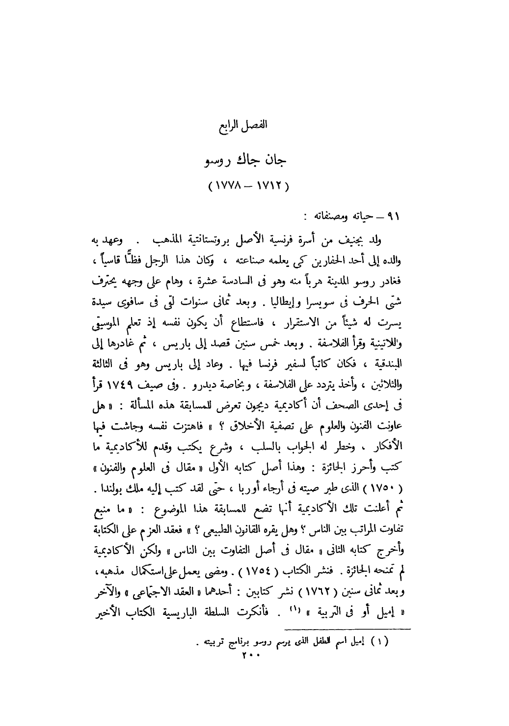 الفصل الرابع: جان جاك روسو " 1712 - 1778 "