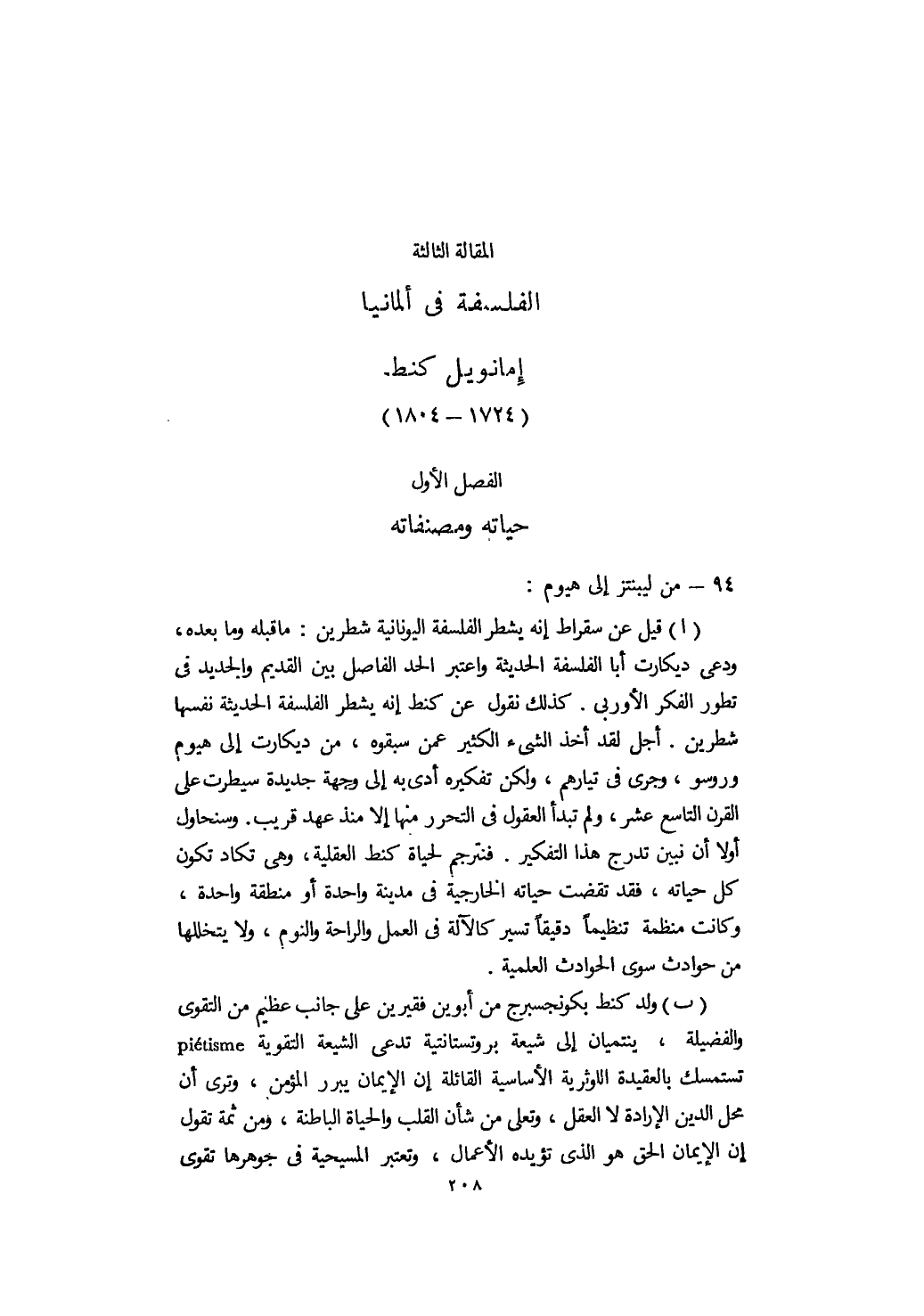 المقالة الثالثة: الفلسفة في ألمانيا إمانويل كنط " 1724 - 1804 "