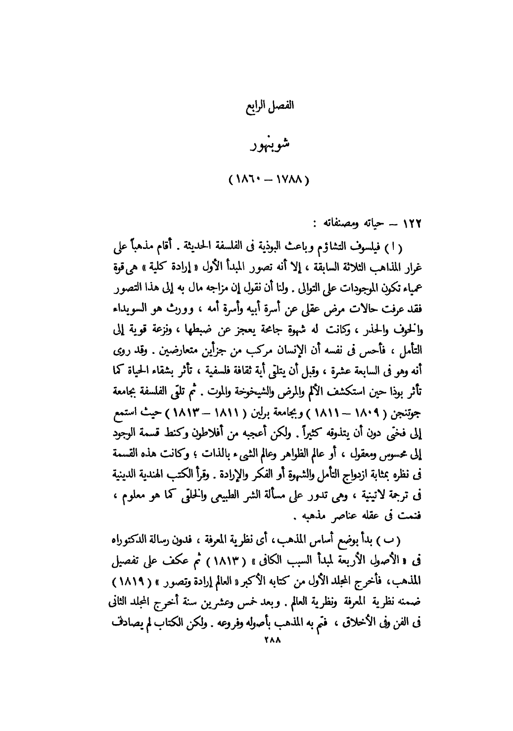 الفصل الرابع: شوبنهور " 1788 - 1860 "