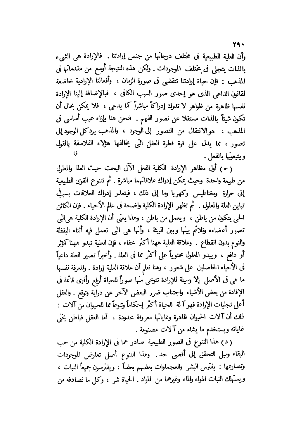 د- هذا التنوع في الصور الطبيعية صادر عما في الإرادة الكلية من حب البقاء وميل للتحقق إلى أقصى حد. وهذا التنوع أصل تعارض الموجودات وتصارعها: يفترس البشر والعجماوات بعضهم بعضًا, ويفترسون جميعًا النبات، ويستهلك النبات الهواء والماء وغيرهما من المواد. الحياة شر، وكل ما نصادفه من