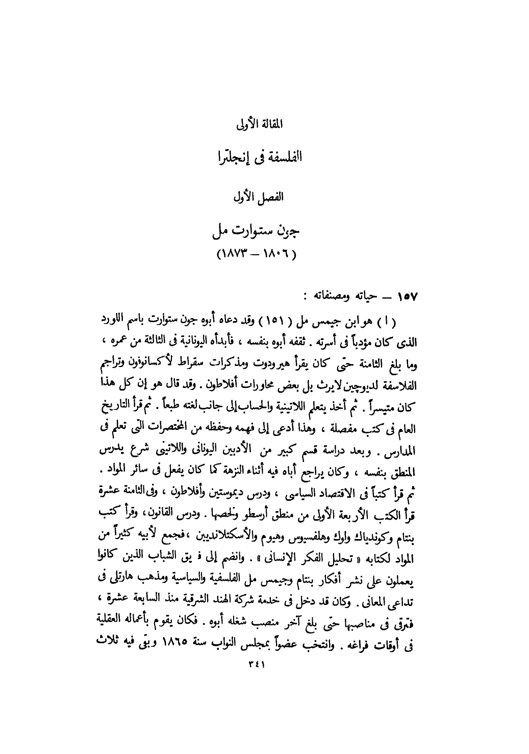 الفصل الأول: جون ستوارت مل " 1806 - 1873 "