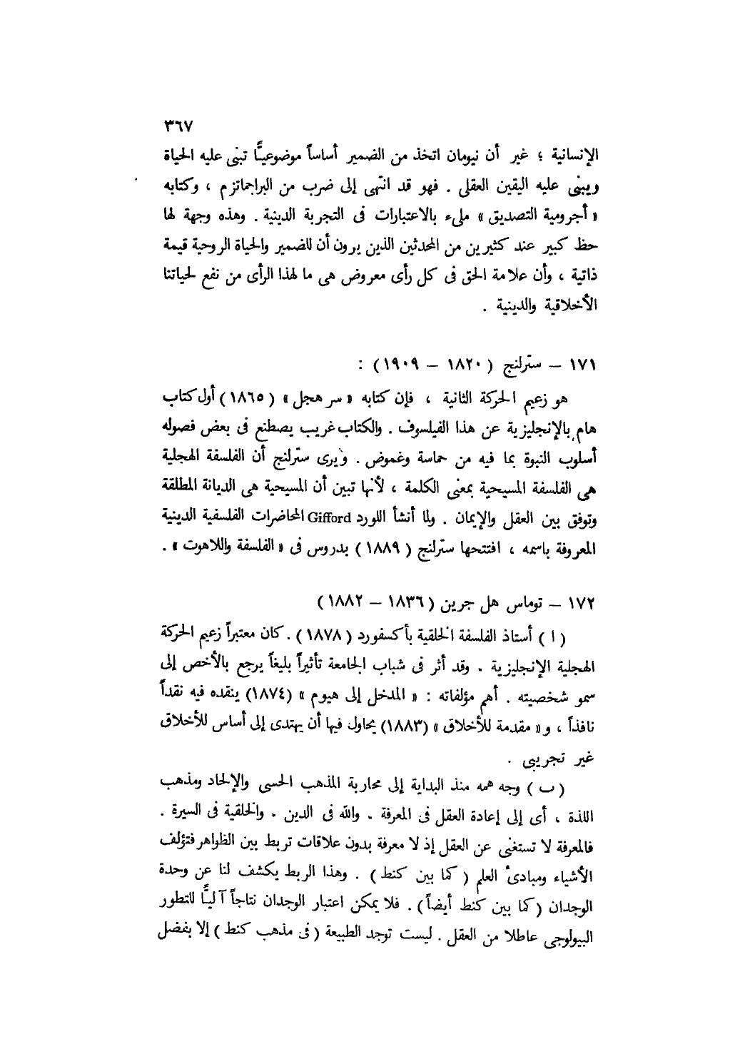 أ- أستاذ الفلسفة الخلقية بأكسفورد " 1878 ". كان معتبرًا زعيم الحركة الهجلية الإنجليزية، وقد أثر في شباب الجامعة تأثيرًا بليغًا يرجع بالأخص إلى سمو شخصيته. أهم مؤلفاته: "المدخل إلى هيوم" " 1874 " ينقده فيه نقدًا نافذًا، و"مقدمة للأخلاق" " 1883 " يحاول فيها أن يهتدي إلى أساس للأخلاق غير تجريبي.
