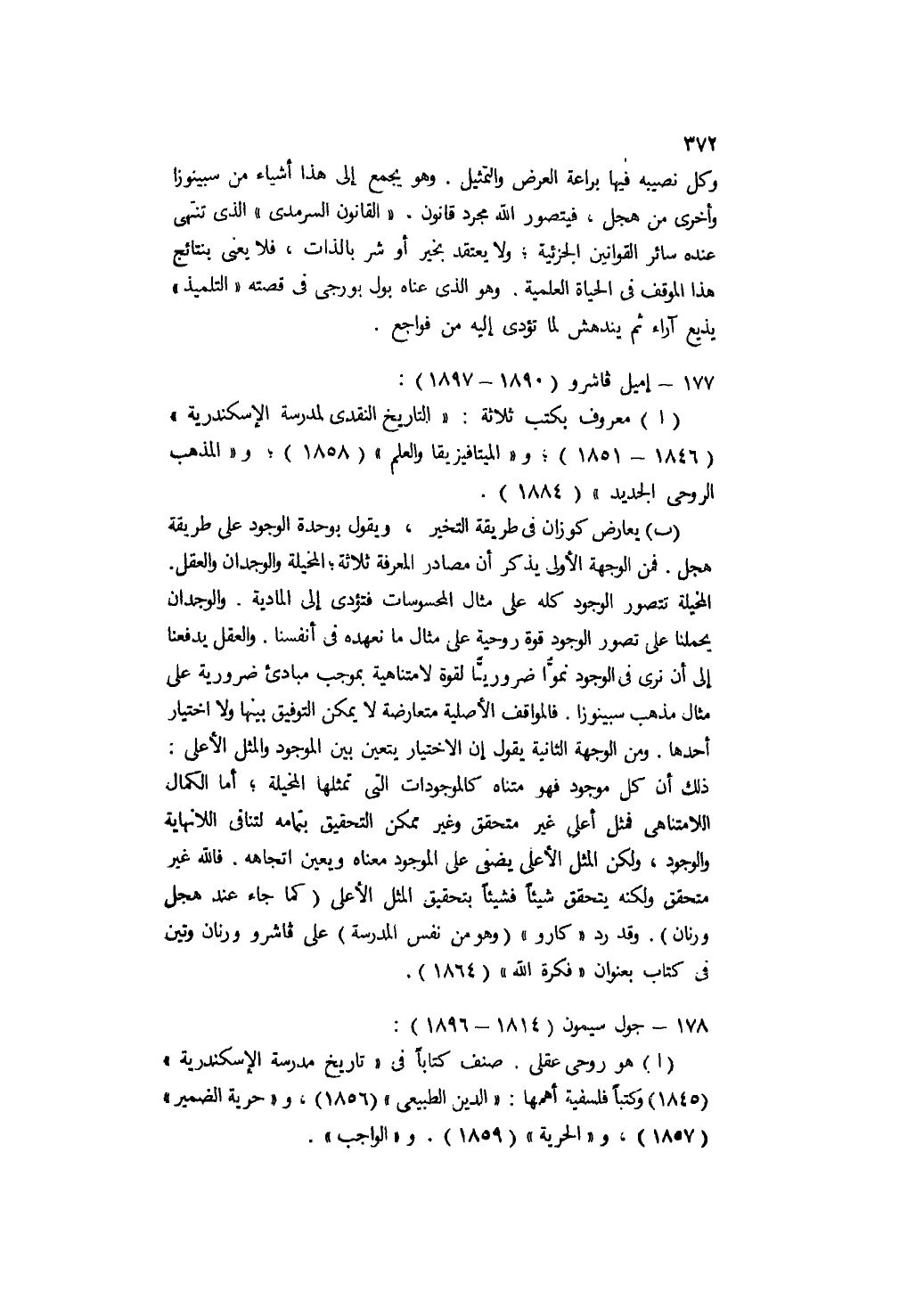 أ- هو روحي عقلي. صنف كتابًا في "تاريخ مدرسة الإسكندرية" " 1845 " وكتبًا فلسفية أهمها: "الدين الطبيعي" " 1856 "، و"حرية الضمير" " 1857 "؛ و"الحرية" " 1859 "؛ و"الواجب".