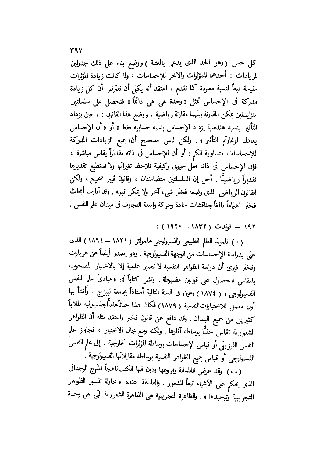 أ- تلميذ العالم الطبيعي والفسيولوجي هلمولتز " 1821 - 1894 " الذي عني بدراسة الإحساسات من الوجهة الفسيولوجية. وهو يصدر أيضًا عن هربارت وفخنر فيرى أن دراسة الظواهر النفسية لا تصير علمية إلا بالاختبار المصحوب بالمقاس للحصول على قوانين مضبوطة. ونشر كتابًا في "مبادئ علم النفس الفسيولوجي" " 1874 " وعين في السنة التالية أستاذا بجامعة ليبزج، وأنشأ بها أول معمل للاختبارات النفسية " 1897 " فكان هذا حدثا مهما جذب إليه طلابا كثيرين من جميع البلدان. وقد دافع عن قانون فخنر واعتقد مثله أن الظواهر الشعورية تقاس حقا بوساطة آثارها. ولكنه وسع مجال الاختبار, فجاوز علم النفس الفيزيقي أو قياس الإحساسات بوساطة المؤثرات الخارجية، إلى علم النفس الفسيولوجي أو قياس جميع الظواهر النفسية بوساطة مقابلاتها الفسيولوجية.