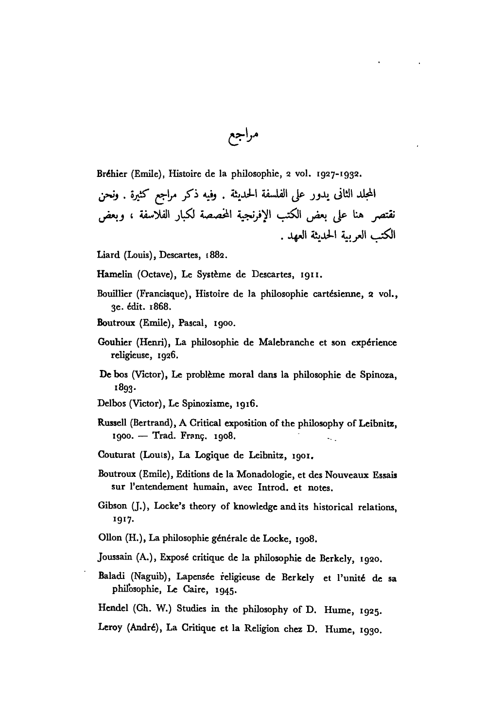 المجلد الثاني يدور على الفلسفة الحديثة. وفيه ذكر مراجع كثيرة. ونحن نقتصر هنا على بعض الكتب الإفرنجية المخصصة لكبار الفلاسفة، وبعض الكتب العربية الحديثة العهد.