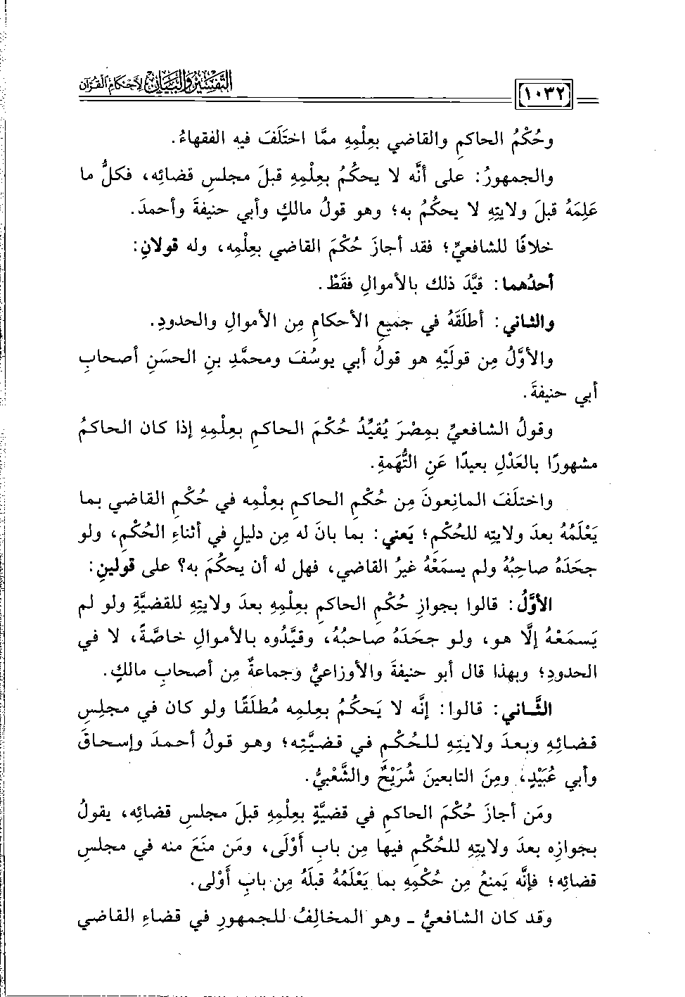 وحُكمُ الحاكمِ والقاضي بعِلْمِهِ ممَّا اختَلَفَ فيه الفقهاءُ.