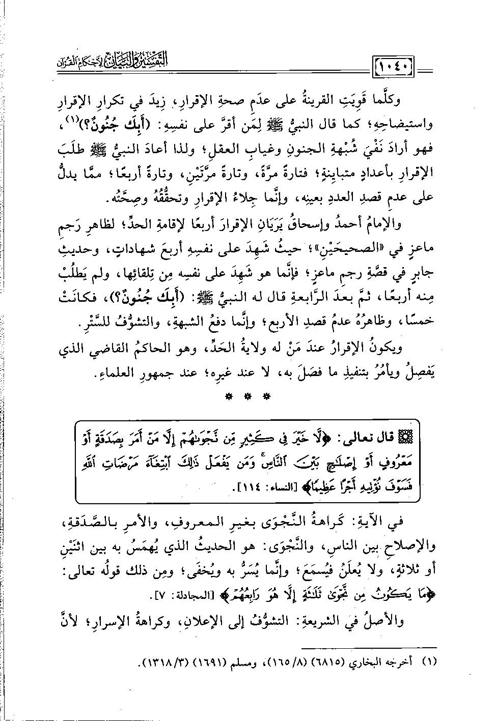 قال تعالى: {لَا خَيْرَ فِي كَثِيرٍ مِنْ نَجْوَاهُمْ إِلَّا مَنْ أَمَرَ بِصَدَقَةٍ أَوْ مَعْرُوفٍ أَوْ إِصْلَاحٍ بَيْنَ النَّاسِ وَمَنْ يَفْعَلْ ذَلِكَ ابْتِغَاءَ مَرْضَاتِ اللَّهِ فَسَوْفَ نُؤْتِيهِ أَجْرًا عَظِيمًا (١١٤)} [النساء: ١١٤].