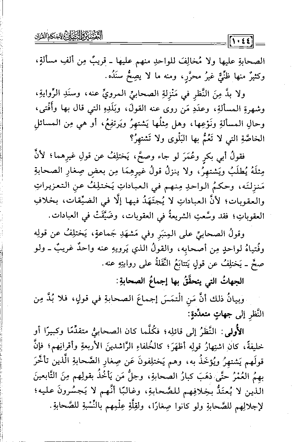 وبيان ذلك أنَّ مَنِ التمَسَ إجماعَ الصحابةِ في قولٍ، فلا بُدَّ مِن النَّظرِ إلى جهاتٍ متعدِّدةٍ: