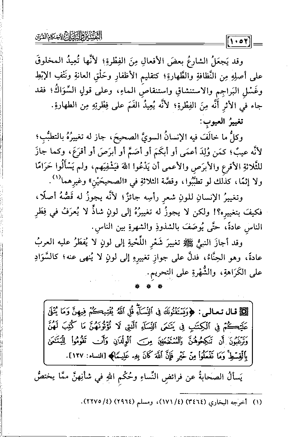 قال تعالى: {وَيَسْتَفْتُونَكَ فِي النِّسَاءِ قُلِ اللَّهُ يُفْتِيكُمْ فِيهِنَّ وَمَا يُتْلَى عَلَيْكُمْ فِي الْكِتَابِ فِي يَتَامَى النِّسَاءِ اللَّاتِي لَا تُؤْتُونَهُنَّ مَا كُتِبَ لَهُنَّ وَتَرْغَبُونَ أَنْ تَنْكِحُوهُنَّ وَالْمُسْتَضْعَفِينَ مِنَ الْوِلْدَانِ وَأَنْ تَقُومُوا لِلْيَتَامَى بِالْقِسْطِ وَمَا تَفْعَلُوا مِنْ خَيْرٍ فَإِنَّ اللَّهَ كَانَ بِهِ عَلِيمًا (١٢٧)} [النساء: ١٢٧].
