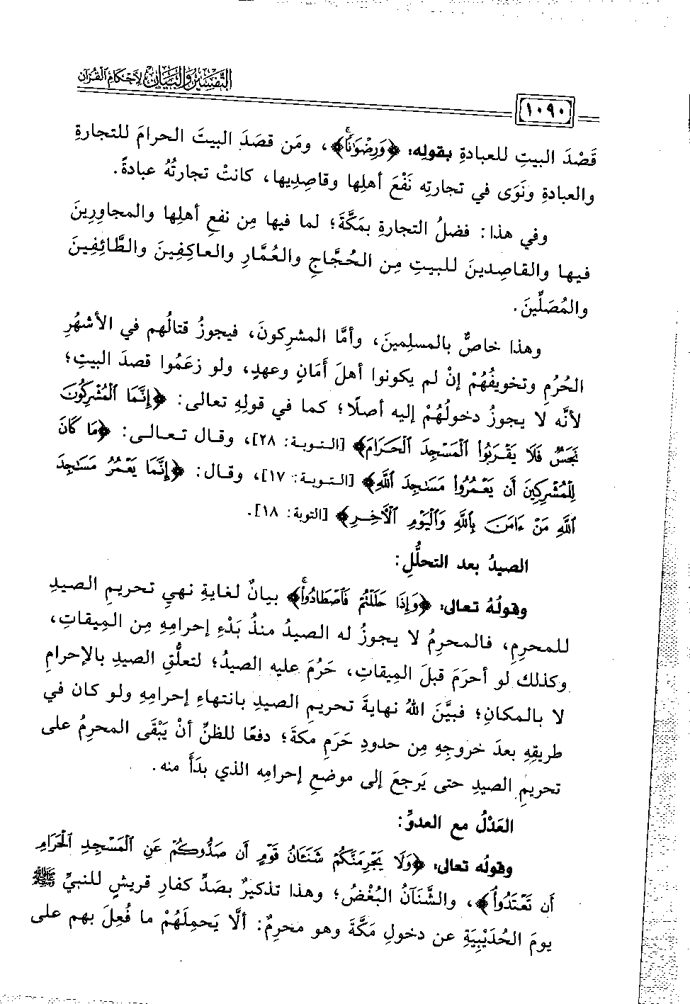 قَصْدَ البيتِ للعبادةِ بقوله: {وَرِضْوانًا}، ومَن قصَدَ البيتَ الحرامَ لِلتجارةِ والعبادةِ ونَوَى في تجارته نَفْعَ أهلِها وقاصِدِيها، كانت تجارتهُ عبادة.