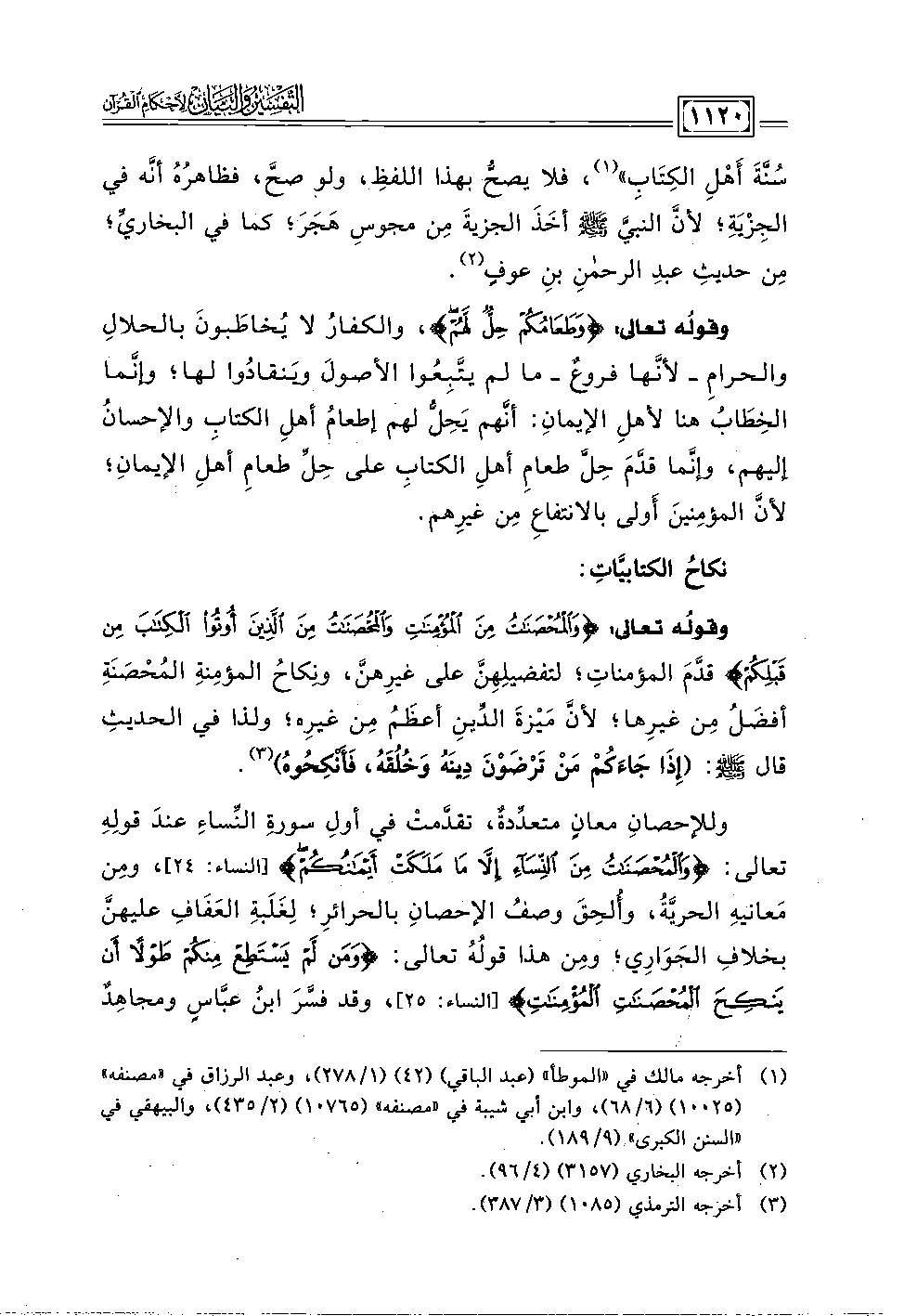 وقولُه تعالى: {وَالْمُحْصَنَاتُ مِنَ الْمُؤْمِنَاتِ وَالْمُحْصَنَاتُ مِنَ الَّذِينَ أُوتُوا الْكِتَابَ مِنْ قَبْلِكُمْ} قدَّمَ المؤمناتِ؛ لتفضيلِهِنَّ على غيرِهن، ونكاحُ المؤمِنةِ المُحصَنَةِ أفضَلُ مِن غيرِها؛ لأنَّ مَيْزةَ الدينِ أعظَمُ مِن غيرِه؛ ولذا في الحديثِ قال - صلى الله عليه وسلم -: (إذَا جَاءكم مَن تَرْضَوْنَ دِينَه وَخُلقَه، فَأنكِحُوهُ) (٣).