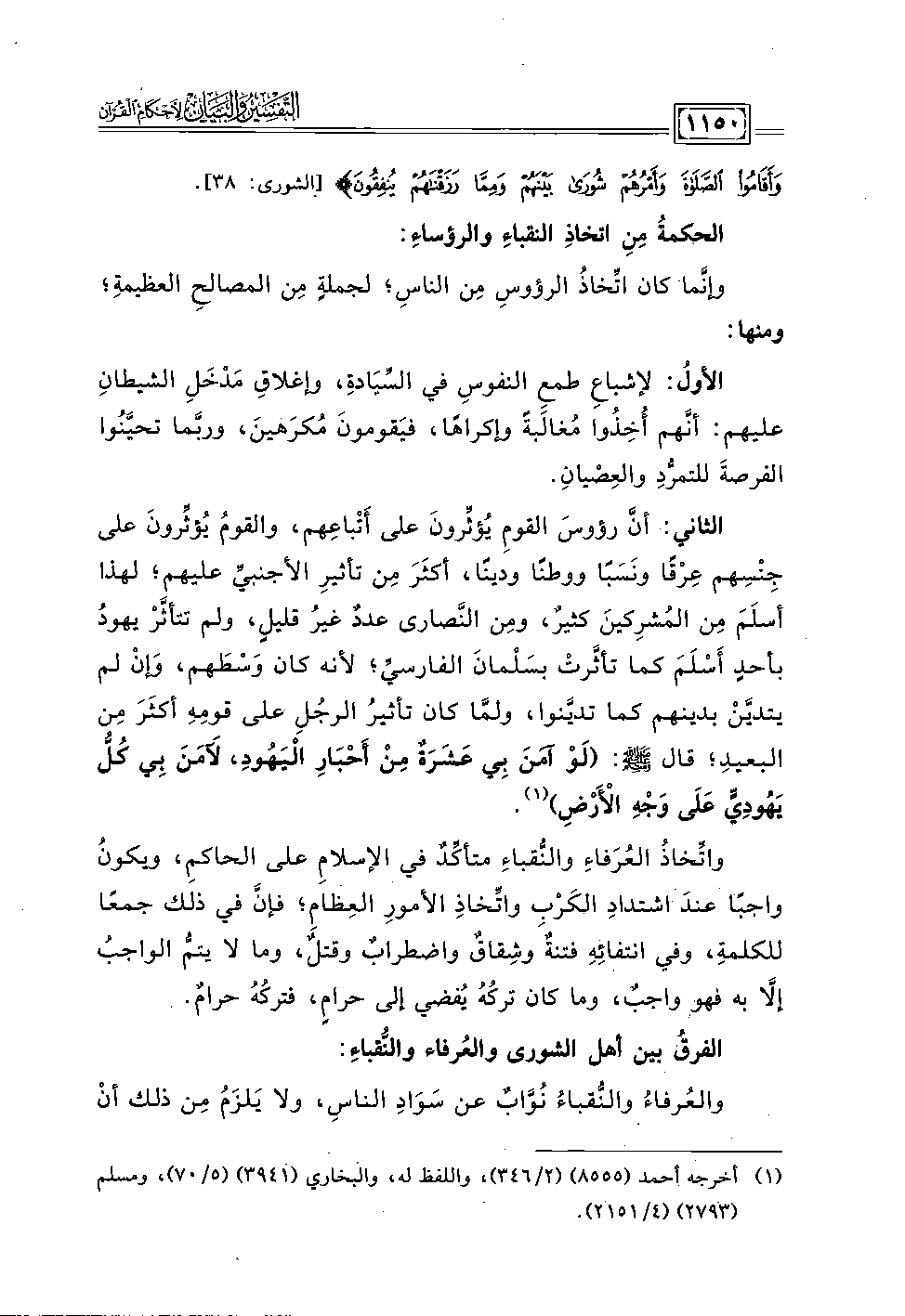 الحكمةُ مِنِ اتخاذِ النقباءِ والرؤساءِ: