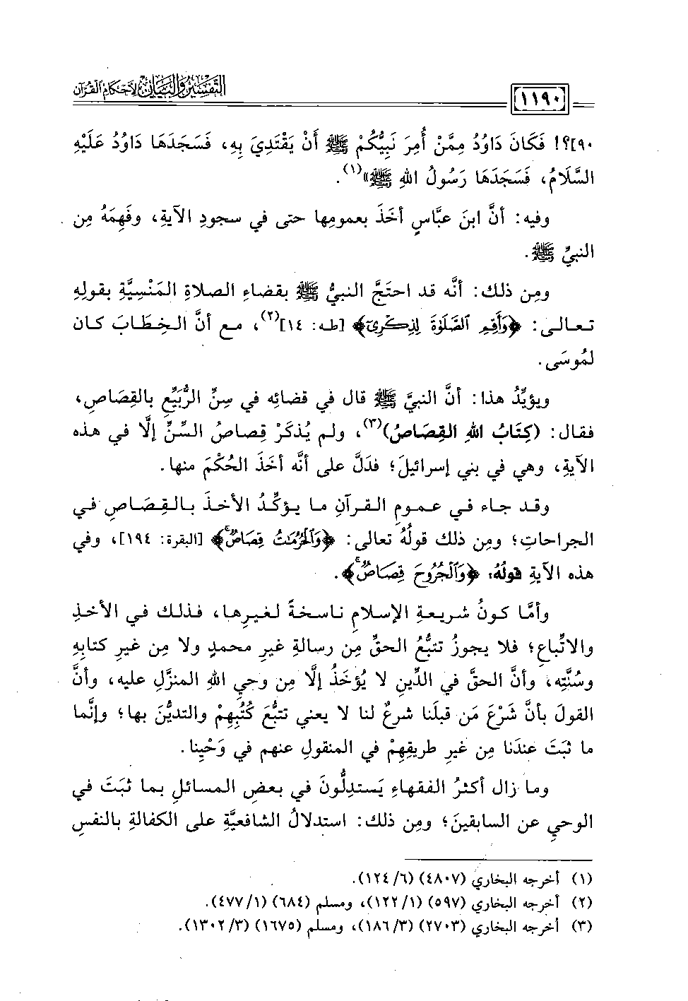 ويؤيِّدُ هذا: أنَّ النبيَّ - صلى الله عليه وسلم - قال في قضائِه في سِنِّ الرُّبَيِّع بالقِصَاص، فقال: (كِتَابُ اللهِ القِصَاصُ) (٣)، ولم يُذكَرْ قِصاصُ السِّنِّ إلا في هذه الآية، وهي في بني إسرائيلَ؛ فدَلَّ على أنه أخَذَ الحُكْمَ منها.
