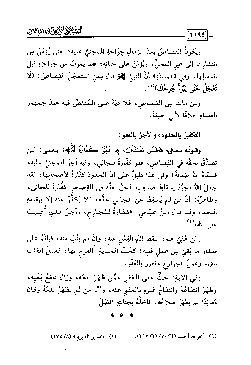 التكفيرُ بالحدود، والأجرُ بالعفوِ: