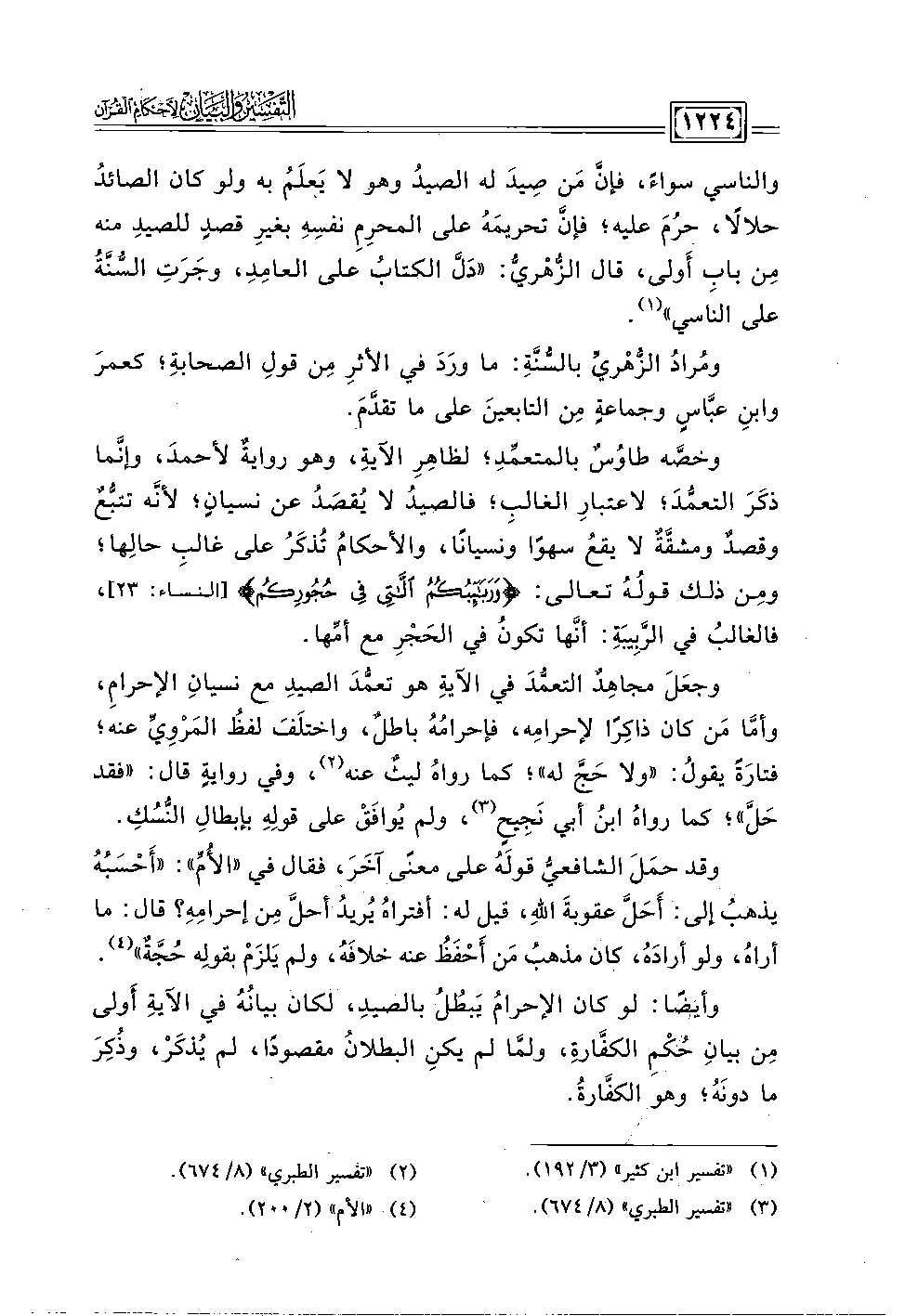 وأيضًا: لو كان الإحرامُ يَبطُلُ بالصيدِ، لكان بيانُهُ في الآيةِ أَولى مِن بيانِ حُكْمِ الكفَّارة، ولمَّا لم يكنِ البطلانُ مقصودًا، لم يُذكَرُ، وذُكِرَ ما دونَهُ؛ وهو الكفَّارةُ.