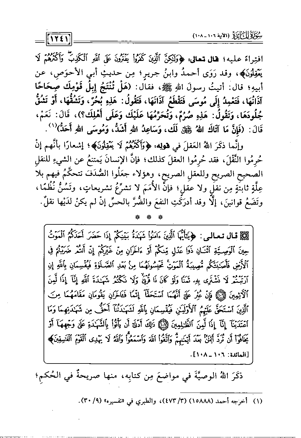 قال تعالى: {يَاأَيُّهَا الَّذِينَ آمَنُوا شَهَادَةُ بَيْنِكُمْ إِذَا حَضَرَ أَحَدَكُمُ الْمَوْتُ حِينَ الْوَصِيَّةِ اثْنَانِ ذَوَا عَدْلٍ مِنْكُمْ أَوْ آخَرَانِ مِنْ غَيْرِكُمْ إِنْ أَنْتُمْ ضَرَبْتُمْ فِي الْأَرْضِ فَأَصَابَتْكُمْ مُصِيبَةُ الْمَوْتِ تَحْبِسُونَهُمَا مِنْ بَعْدِ الصَّلَاةِ فَيُقْسِمَانِ بِاللَّهِ إِنِ ارْتَبْتُمْ لَا نَشْتَرِي بِهِ ثَمَنًا وَلَوْ كَانَ ذَا قُرْبَى وَلَا نَكْتُمُ شَهَادَةَ اللَّهِ إِنَّا إِذًا لَمِنَ الْآثِمِينَ (١٠٦) فَإِنْ عُثِرَ عَلَى أَنَّهُمَا اسْتَحَقَّا إِثْمًا فَآخَرَانِ يَقُومَانِ مَقَامَهُمَا مِنَ الَّذِينَ اسْتَحَقَّ عَلَيْهِمُ الْأَوْلَيَانِ فَيُقْسِمَانِ بِاللَّهِ لَشَهَادَتُنَا أَحَقُّ مِنْ شَهَادَتِهِمَا وَمَا اعْتَدَيْنَا إِنَّا إِذًا لَمِنَ الظَّالِمِينَ (١٠٧) ذَلِكَ أَدْنَى أَنْ يَأْتُوا بِالشَّهَادَةِ عَلَى وَجْهِهَا أَوْ يَخَافُوا أَنْ تُرَدَّ أَيْمَانٌ بَعْدَ أَيْمَانِهِمْ وَاتَّقُوا اللَّهَ وَاسْمَعُوا وَاللَّهُ لَا يَهْدِي الْقَوْمَ الْفَاسِقِينَ (١٠٨)} [المائدة: ١٠٦ - ١٠٨].