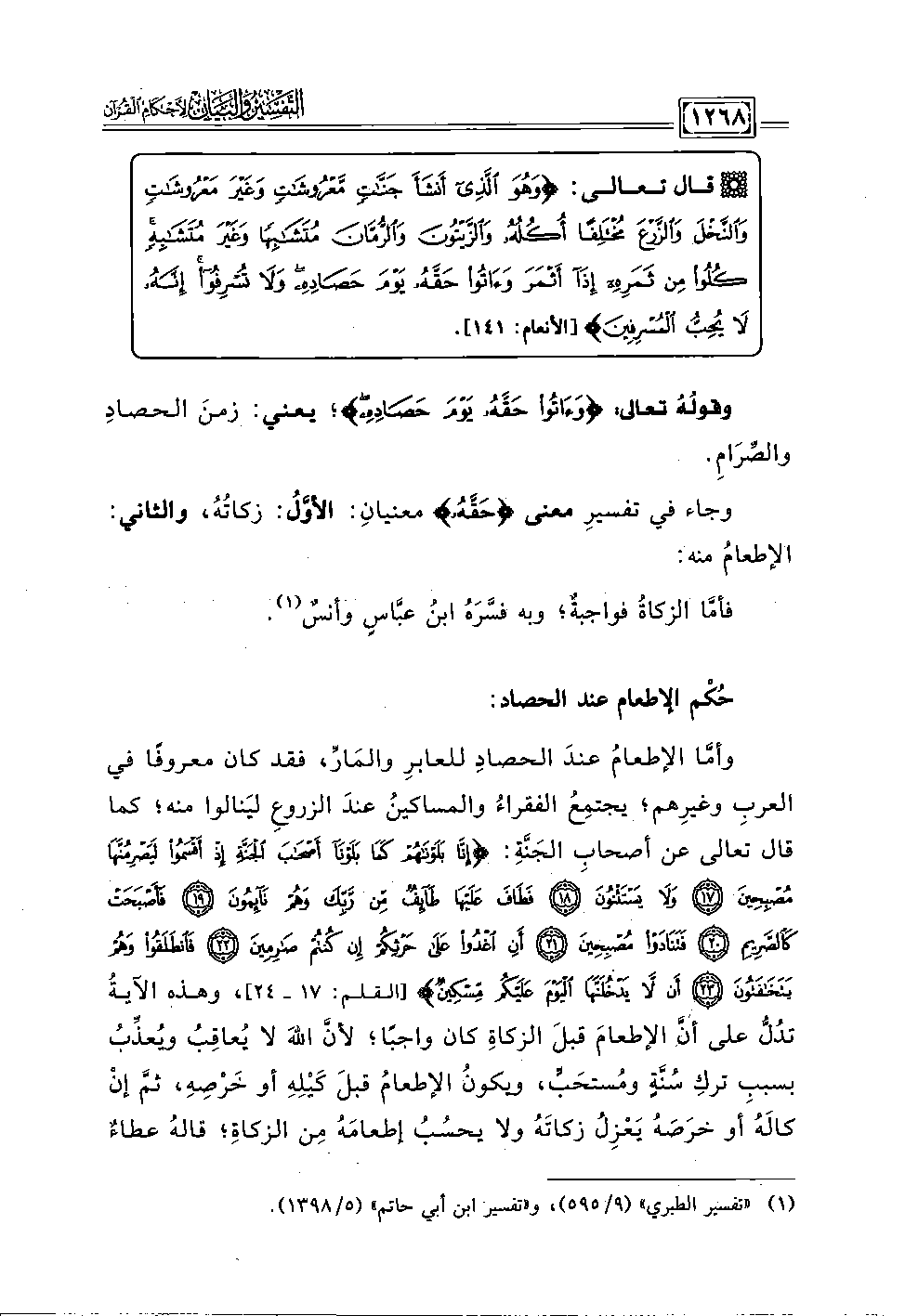 قال تعالى: {وَهُوَ الَّذِي أَنْشَأَ جَنَّاتٍ مَعْرُوشَاتٍ وَغَيْرَ مَعْرُوشَاتٍ وَالنَّخْلَ وَالزَّرْعَ مُخْتَلِفًا أُكُلُهُ وَالزَّيْتُونَ وَالرُّمَّانَ مُتَشَابِهًا وَغَيْرَ مُتَشَابِهٍ كُلُوا مِنْ ثَمَرِهِ إِذَا أَثْمَرَ وَآتُوا حَقَّهُ يَوْمَ حَصَادِهِ وَلَا تُسْرِفُوا إِنَّهُ لَا يُحِبُّ الْمُسْرِفِينَ} [الأنعام: ١٤١].