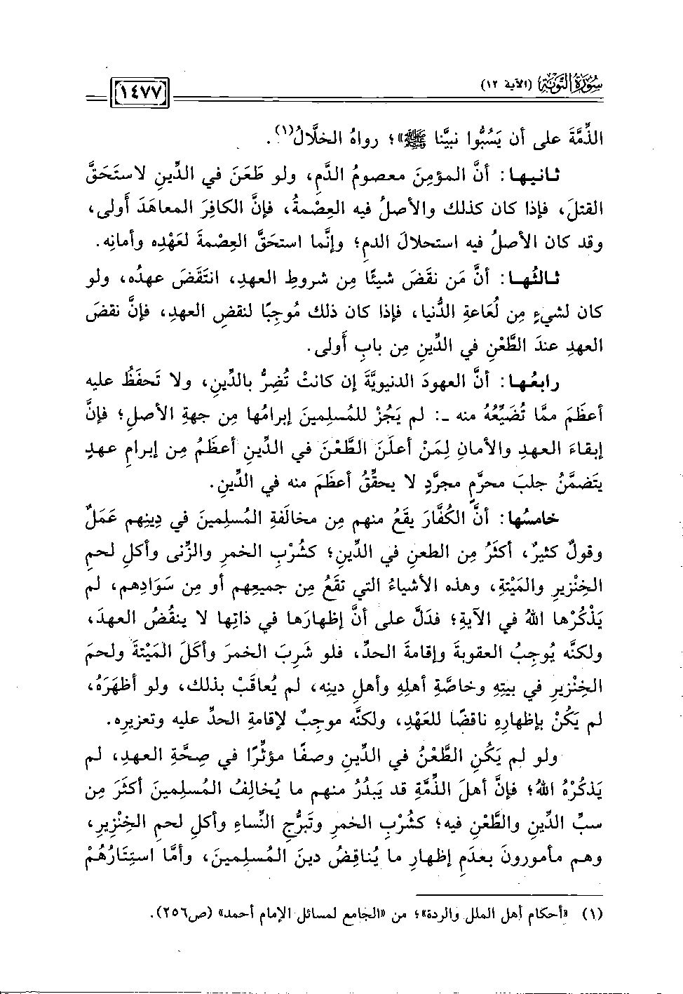 (١) "أحكام أهل الملل والردة"؛ من "الجامع لمسائل الإمام أحمد" (ص ٢٥٦).