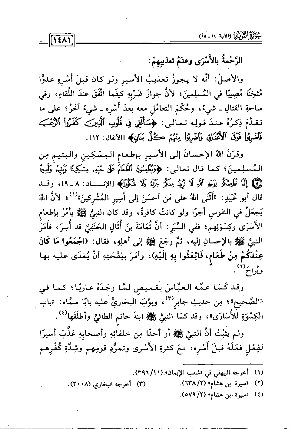 الرَّحْمةُ بالأَسْرَى وعدَمُ تعذيبِهِمْ: