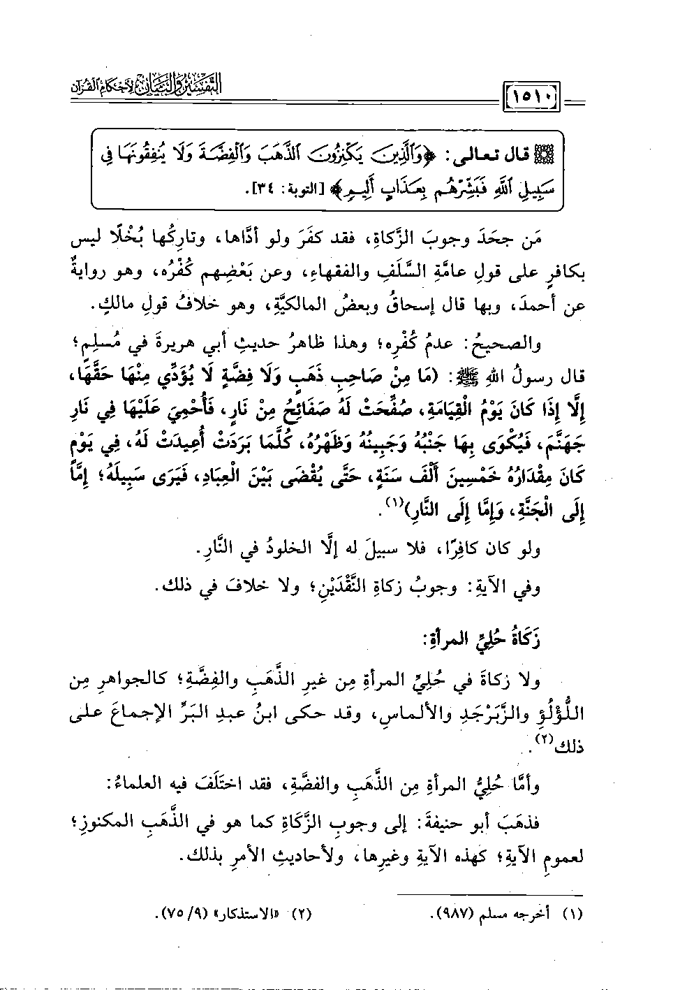 قال تعالى: {وَالَّذِينَ يَكْنِزُونَ الذَّهَبَ وَالْفِضَّةَ وَلَا يُنْفِقُونَهَا فِي سَبِيلِ اللَّهِ فَبَشِّرْهُمْ بِعَذَابٍ أَلِيمٍ} [التوبة: ٣٤].