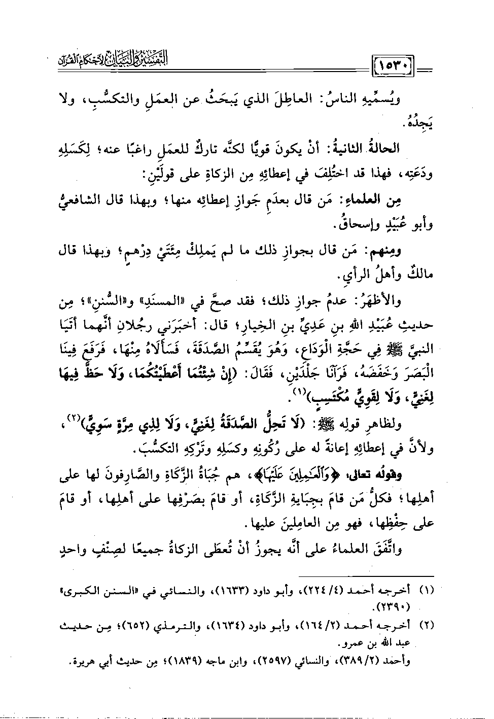 والأظهَرُ: عدمُ جوازِ ذلك؛ فقد صحَّ في "المسنَدِ" و"السُّننِ"؛ مِن حديثِ عُبَيْدِ اللهِ بنِ عَدِيِّ بنِ الخِيارِ؛ قال: أخبَرَني رجُلانِ أنَّهما أتَيَا النبيَّ - صلى الله عليه وسلم - فِي حَجَّةِ الْوَدَاع، وَهُوَ يقَسِّمُ الصَّدَقَةَ، فَسَأَلَاهُ مِنْهَا، فَرَفَعَ فِينَا الْبَصَرَ وَخَفَصَهُ، فَرَآنَا جَلْدَيْن، فَقَالَ: (إِنْ شِئْتُمَا أَعْطَيْتُكُمَا، وَلَا حَظَّ فِيهَا لِغَنيٍّ، وَلَا لِقَوِيٍّ مُكْتَسِبٍ) (١).
