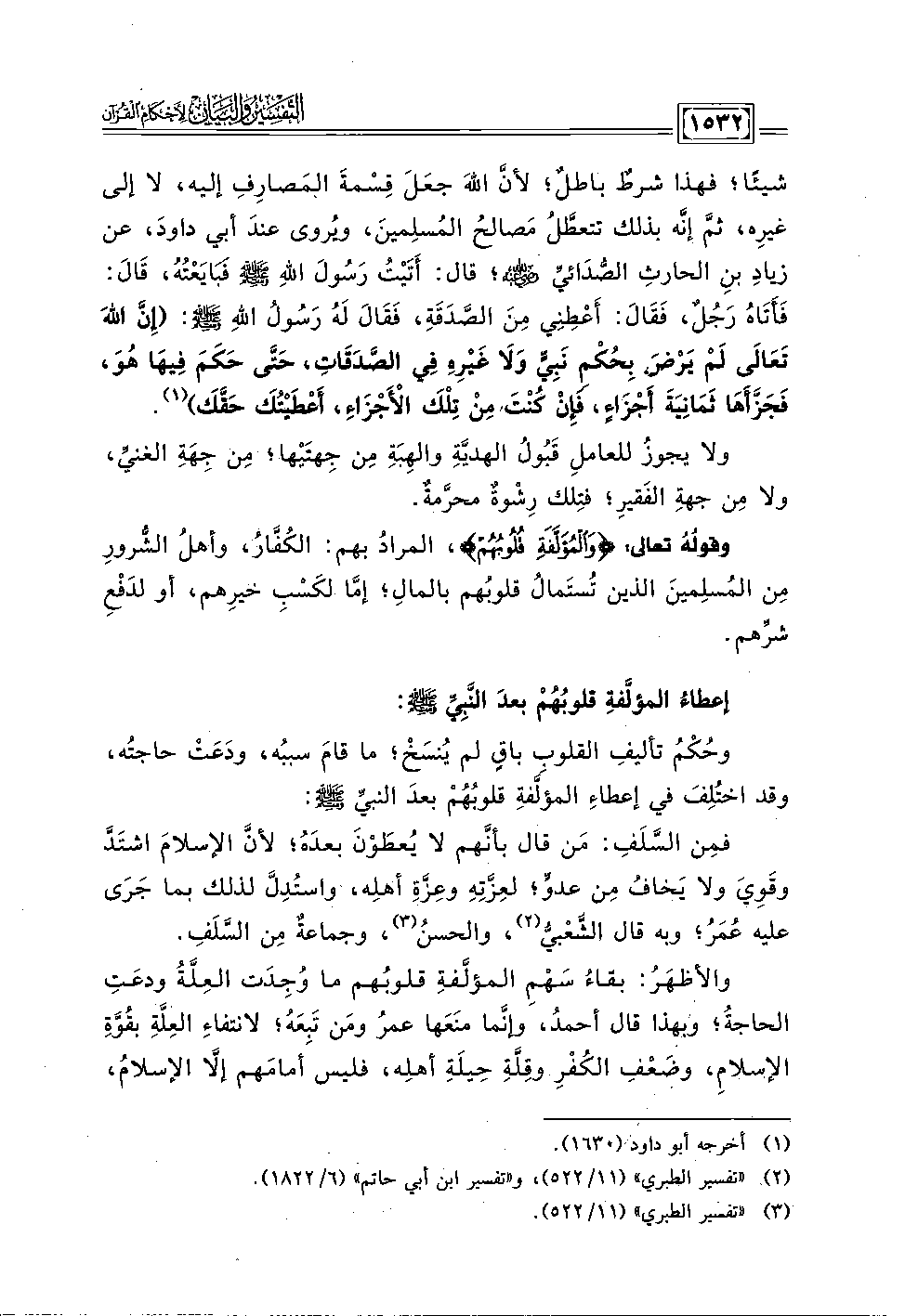 والأظهَرُ: بقاءُ سَهْمِ المؤلَّفةِ قلوبُهم ما وُجِدَت العِلَّةُ ودعَتِ الحاجةُ؛ وبهذا قال أحمدُ، وإنَّما منَعَها عمرُ ومَن تَبِعَهُ؛ لانتفاءِ العِلَّةِ بقُوَّةِ الإسلام، وضَعْفِ الكُفْرِ وقِلَّةِ حِيلَةِ أهلِه، فليسَ أمامَهم إلَّا الإسلامُ،