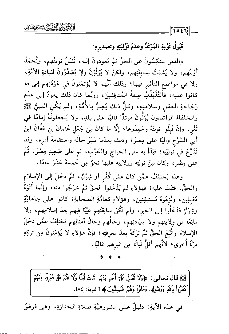 قَبُولُ تَوْبةِ المُرْتَدِّ وعدَمُ تَوْلِيَتِهِ وتصديرِهِ: