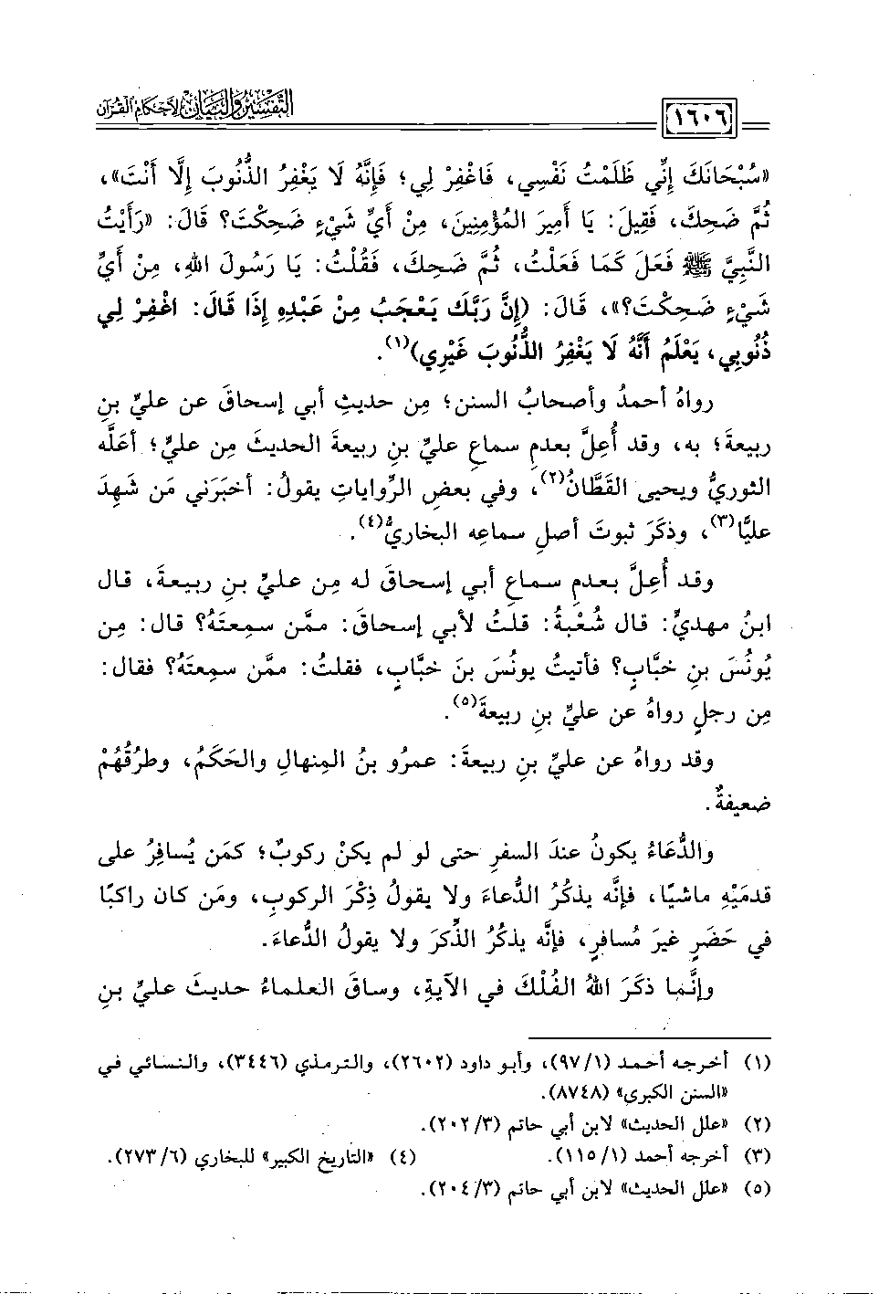 رواهُ أحمدُ وأصحابُ السنن؛ مِن حديثِ أبي إسحاقَ عن عليِّ بنِ ربيعةَ؛ به، وقد أُعِلَّ بعدمِ سماعِ عليِّ بنِ ربيعةَ الحديثَ مِن عليِّ أعَلَّه النوريُّ ويحيى القَطَّانُ (٢)، وفي بعضِ الرِّواياتِ يقولُ: أخبَرَني مَن شَهِدَ عليًّا (٣)، وذكَرَ ثبوتَ أصلِ سماعِه البخاريُّ) (٤).