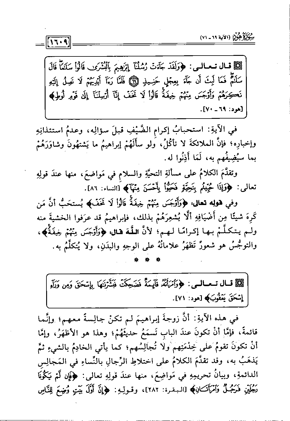 قال تعالى: {وَلَقَدْ جَاءَتْ رُسُلُنَا إِبْرَاهِيمَ بِالْبُشْرَى قَالُوا سَلَامًا قَالَ سَلَامٌ فَمَا لَبِثَ أَنْ جَاءَ بِعِجْلٍ حَنِيذٍ (٦٩) فَلَمَّا رَأَى أَيْدِيَهُمْ لَا تَصِلُ إِلَيْهِ نَكِرَهُمْ وَأَوْجَسَ مِنْهُمْ خِيفَةً قَالُوا لَا تَخَفْ إِنَّا أُرْسِلْنَا إِلَى قَوْمِ لُوطٍ} [هود: ٦٩ - ٧٠].
