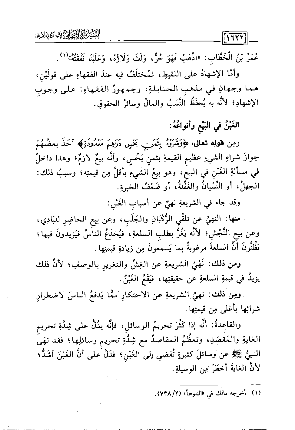 عُمَرُ بْنُ الخَطَّابِ: "اذْهَبْ فَهُوَ حُرٌّ، وَلَكَ وَلَاؤُهُ، وعَلَينَا نَفَقَتُهُ" (١).