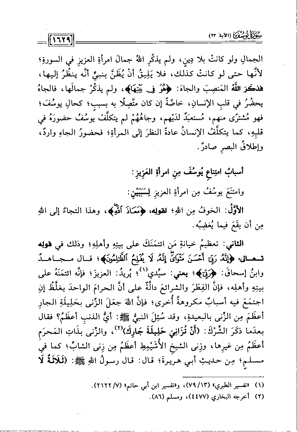 وامتنعَ يوسُفُ مِن امرأةِ العريزِ لِسَبَبَيْنِ: