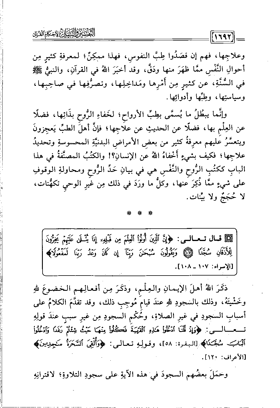 * قال تعالى: {إِنَّ الَّذِينَ أُوتُوا الْعِلْمَ مِنْ قَبْلِهِ إِذَا يُتْلَى عَلَيْهِمْ يَخِرُّونَ لِلْأَذْقَانِ سُجَّدًا (١٠٧) وَيَقُولُونَ سُبْحَانَ رَبِّنَا إِنْ كَانَ وَعْدُ رَبِّنَا لَمَفْعُولًا} [الإسراء: ١٠٧، ١٠٨].