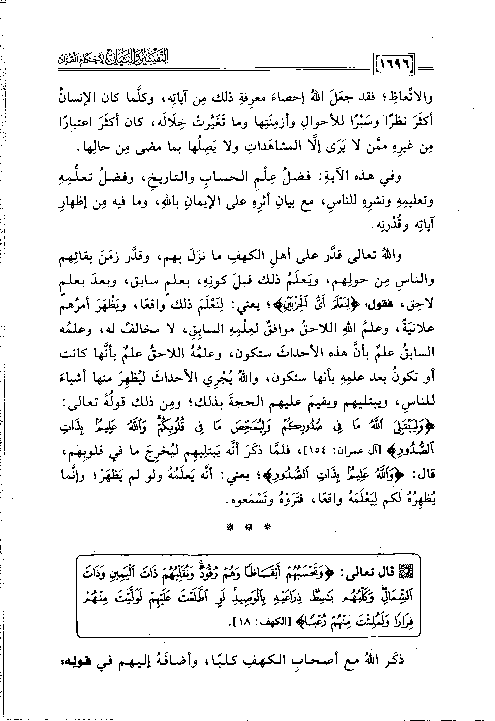 والاتِّعاظِ؛ فقد جعَلَ اللَّهُ إحصاءَ معرِفةِ ذلك مِن آياتِه، وكلَّما كان الإنسانُ أكثَرَ نظرًا وسَبْرًا للأحوالِ وأزمِنَتِها وما تَغَيَّرتْ خِلَالَه، كان أكثَرَ اعتبارًا مِن غيرِهِ ممَّن لا يَرَى إلَّا المشاهَداتِ ولا يَصِلُها بما مضى مِن حالِها.