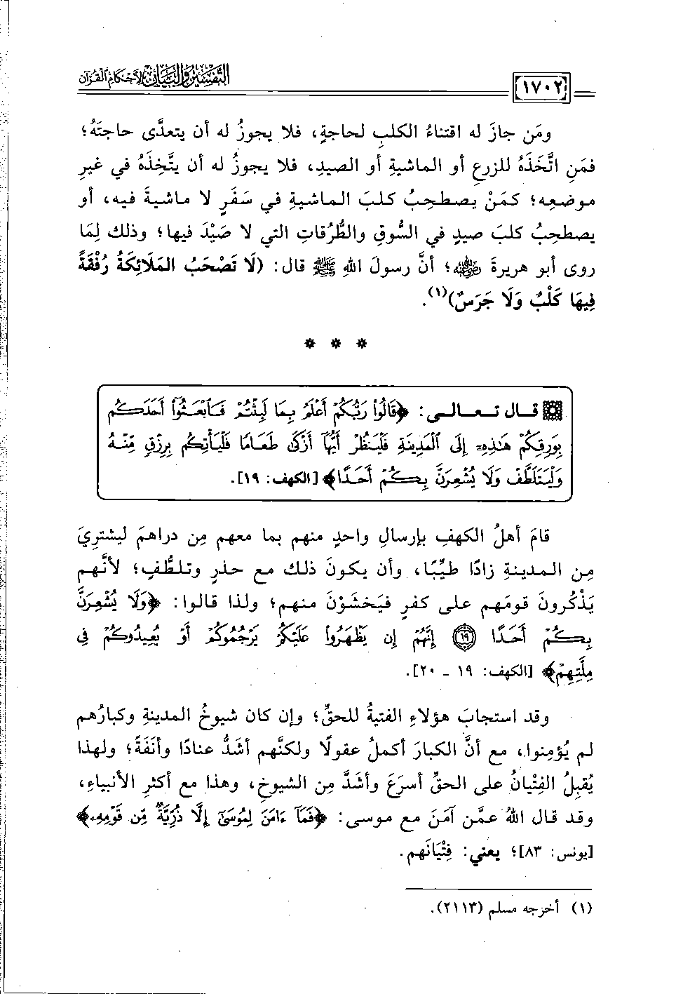 * قال تعالى: {قَالُوا رَبُّكُمْ أَعْلَمُ بِمَا لَبِثْتُمْ فَابْعَثُوا أَحَدَكُمْ بِوَرِقِكُمْ هَذِهِ إِلَى الْمَدِينَةِ فَلْيَنْظُرْ أَيُّهَا أَزْكَى طَعَامًا فَلْيَأْتِكُمْ بِرِزْقٍ مِنْهُ وَلْيَتَلَطَّفْ وَلَا يُشْعِرَنَّ بِكُمْ أَحَدًا (١٩)} [الكهف: ١٩].
