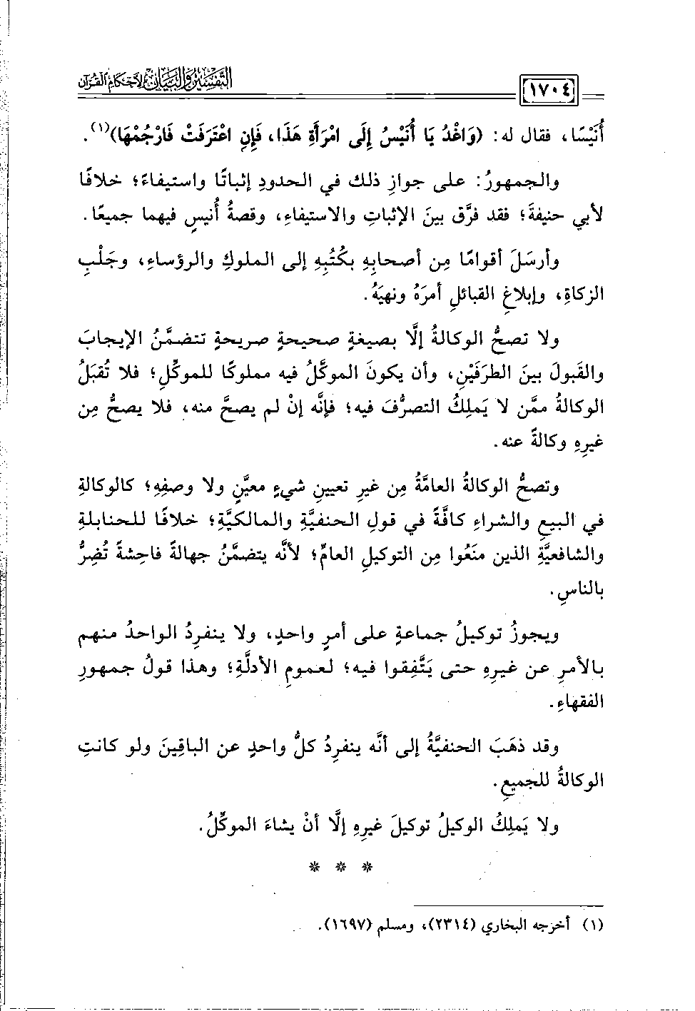 والجمهورُ: على جوازِ ذلك في الحدودِ إثباتًا واستيفاءً؛ خلافًا لأبي حنيفةَ؛ فقد فرَّق بينَ الإثباتِ والاستيفاءِ، وقصةُ أُنيسٍ فيهما جميعًا.