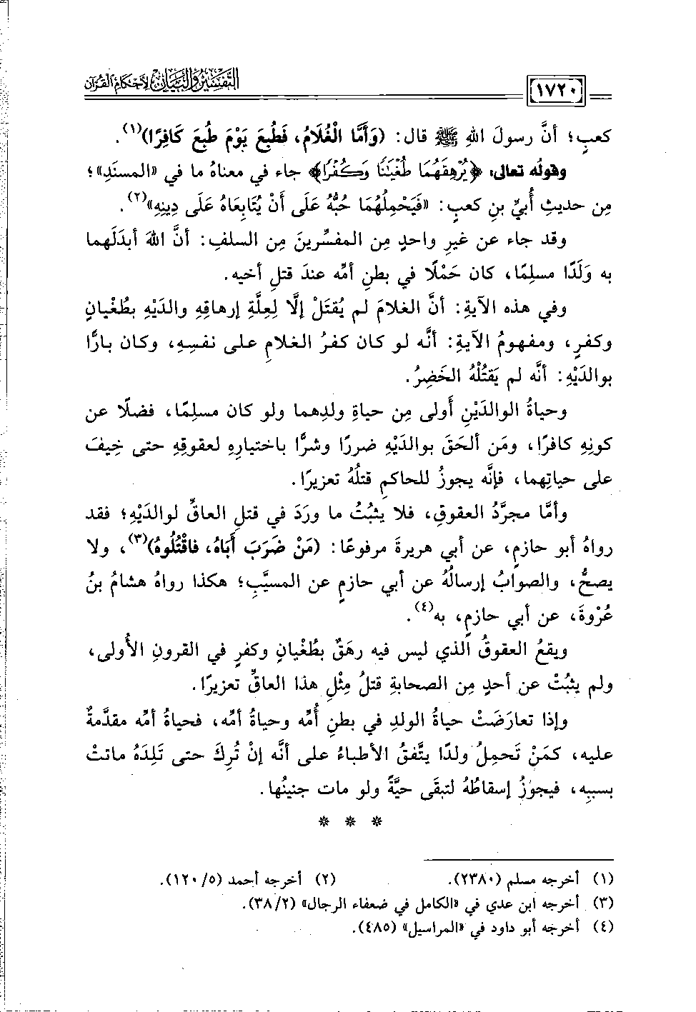 وقولُه تعالى: {يُرْهِقَهُمَا طُغْيَانًا وَكُفْرًا} جاء في معناهُ ما في "المسنَدِ"؛ مِن حديثِ أُبيِّ بنِ كعبٍ: "فَيَحْمِلُهُمَا حُبُّهُ عَلَى أَنْ يُتَابِعَاهُ عَلَى دِينِهِ" (٢).