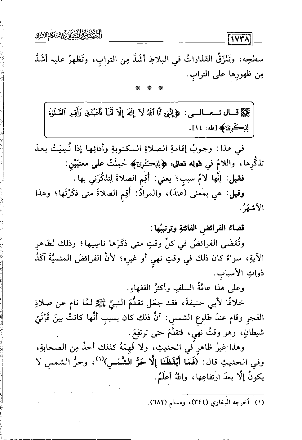* قال تعالى: {إِنَّنِي أَنَا اللَّهُ لَا إِلَهَ إِلَّا أَنَا فَاعْبُدْنِي وَأَقِمِ الصَّلَاةَ لِذِكْرِي (١٤)} [طه: ١٤].
