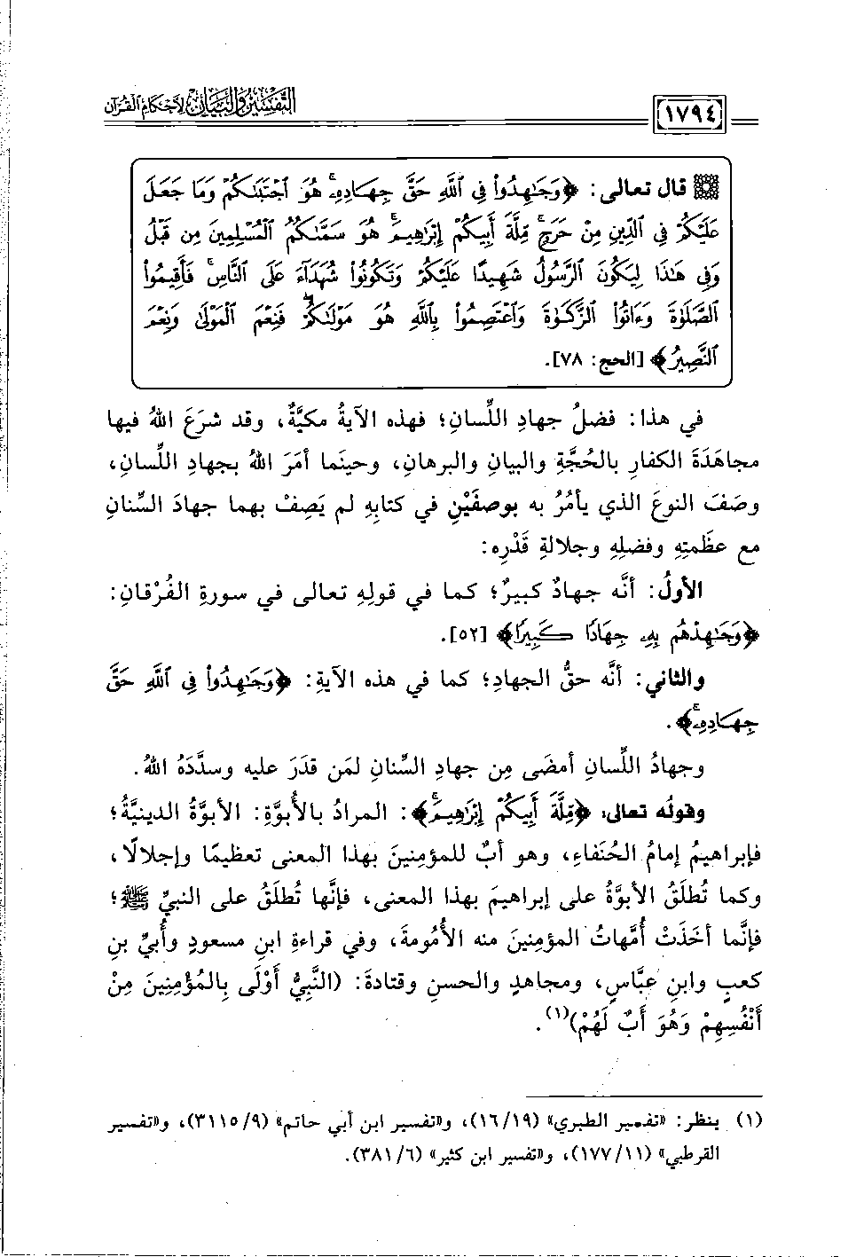 الأولُ: أنَّه جهادٌ كبيرٌ؛ كما في قولِهِ تعالى في سورةِ الفُرْقانِ: {وَجَاهِدْهُمْ بِهِ جِهَادًا كَبِيرًا} [الفرقان: ٥٢].
