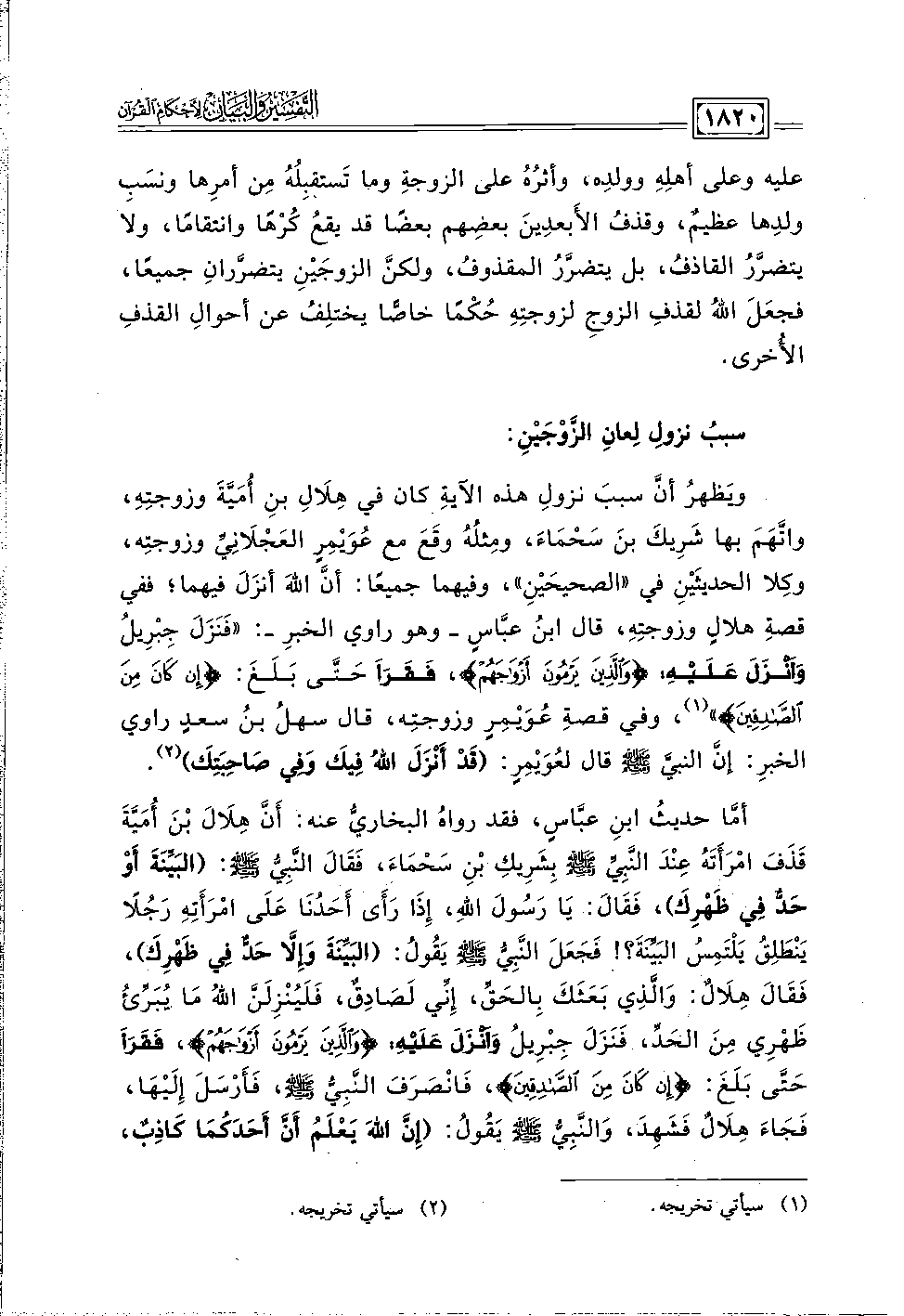 سببُ نزولِ لِعانِ الزَّوْجَيْنِ: