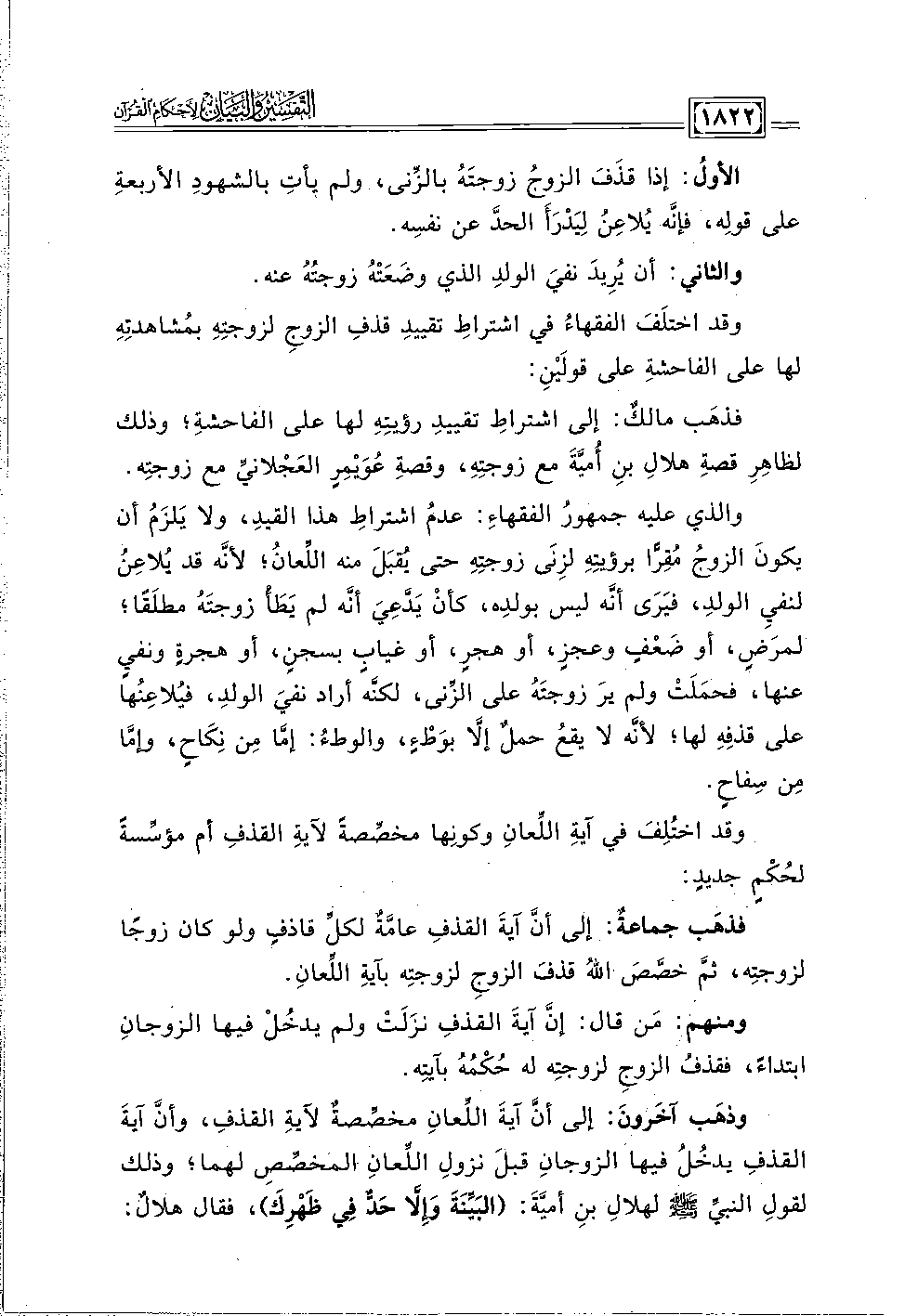 وقد اختُلِفَ في آيةِ اللِّعانِ وكونِها مخصِّصةً لآيةِ القذفِ أم مؤسِّسةً لحُكْمٍ جديدٍ: