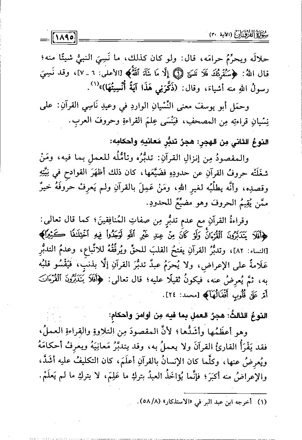 النوعُ الثاني من الهجرِ: هجرُ تدبُّرِ مَعانيهِ وأحكامِه: