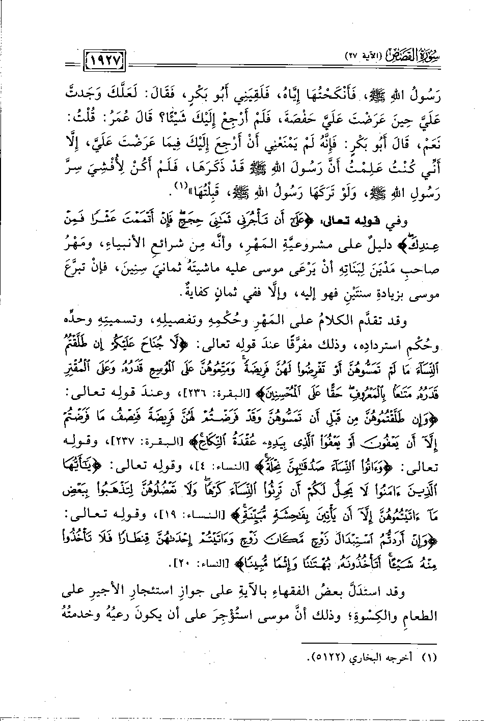 النِّسَاءَ مَا لَمْ تَمَسُّوهُنَّ أَوْ تَفْرِضُوا لَهُنَّ فَرِيضَةً وَمَتِّعُوهُنَّ عَلَى الْمُوسِعِ قَدَرُهُ وَعَلَى الْمُقْتِرِ قَدَرُهُ مَتَاعًا بِالْمَعْرُوفِ حَقًّا عَلَى الْمُحْسِنِينَ} [البقرة: ٢٣٦]، وعندَ قولِه تعالى: {وَإِنْ طَلَّقْتُمُوهُنَّ مِنْ قَبْلِ أَنْ تَمَسُّوهُنَّ وَقَدْ فَرَضْتُمْ لَهُنَّ فَرِيضَةً فَنِصْفُ مَا فَرَضْتُمْ إِلَّا أَنْ يَعْفُونَ أَوْ يَعْفُوَ الَّذِي بِيَدِهِ عُقْدَةُ النِّكَاحِ} [البقرة: ٢٣٧]؛ وقولِه تعالى: {وَآتُوا النِّسَاءَ صَدُقَاتِهِنَّ نِحْلَةً} [النساء: ٤]، وقولِه تعالى: {يَاأَيُّهَا الَّذِينَ آمَنُوا لَا يَحِلُّ لَكُمْ أَنْ تَرِثُوا النِّسَاءَ كَرْهًا وَلَا تَعْضُلُوهُنَّ لِتَذْهَبُوا بِبَعْضِ مَا آتَيْتُمُوهُنَّ إِلَّا أَنْ يَأْتِينَ بِفَاحِشَةٍ مُبَيِّنَةٍ} [النساء: ١٩]، وقولِه تعالى: {وَإِنْ أَرَدْتُمُ اسْتِبْدَالَ زَوْجٍ مَكَانَ زَوْجٍ وَآتَيْتُمْ إِحْدَاهُنَّ قِنْطَارًا فَلَا تَأْخُذُوا مِنْهُ شَيْئًا أَتَأْخُذُونَهُ بُهْتَانًا وَإِثْمًا مُبِينًا} [النساء: ٢٠].