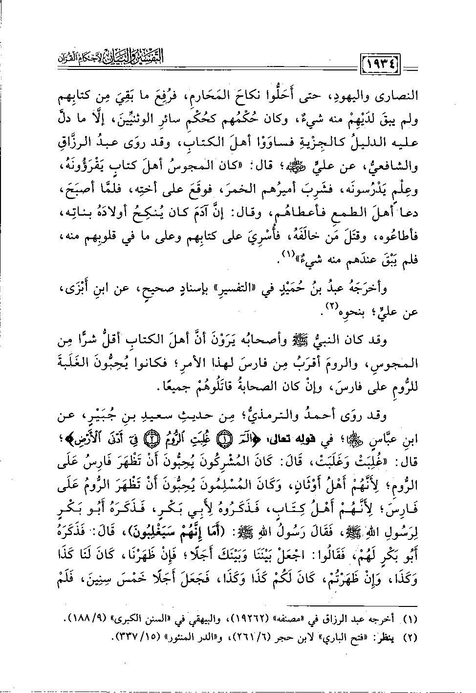 وقد كان النبيُّ -صلى اللَّه عليه وسلم- وأصحابُه يَرَوْنَ أنَّ أهلَ الكتابِ أقلُّ شرًّا مِن المجوسِ، والرومَ أقرَبُ مِن فارسَ لهذا الأمرِ؛ فكانوا يُحِبُّونَ الغَلَبةَ للرُّومِ على فارسَ، وإنْ كان الصحابةُ قاتَلُوهُمْ جميعًا.